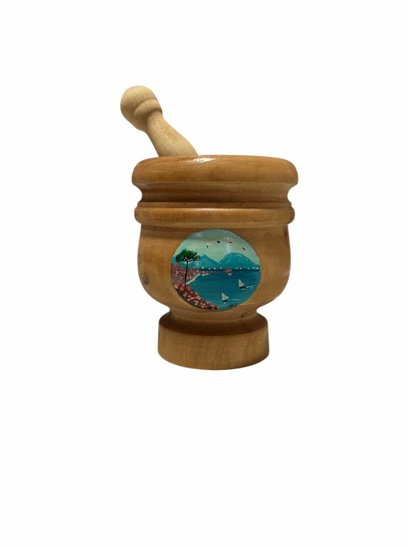 Mortaio con pestello in legno, fatto a mano con dipinto ad olio veduta di Napoli. Misura cm. 11